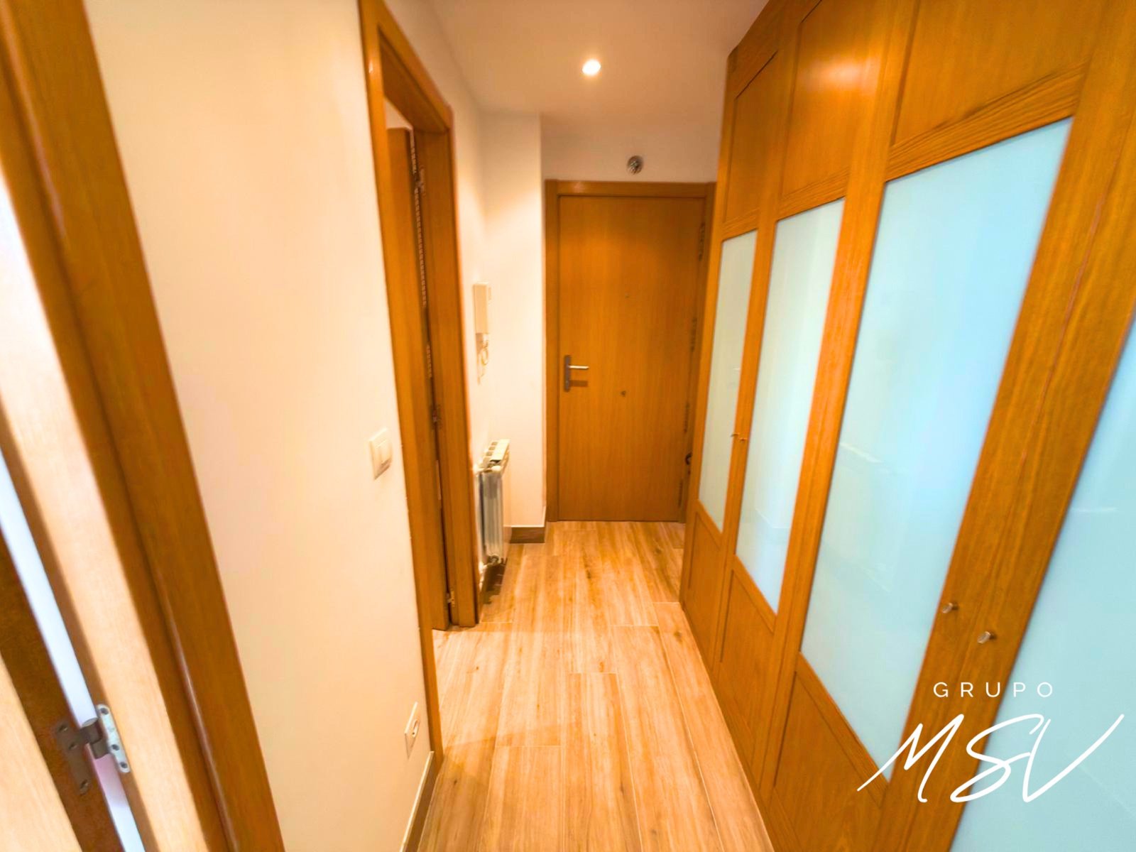 - Distribución Funcional: Amplio hall de entrada con armario gabanero a medida, sala de estar con salida a un pequeño balcón, cocina totalmente montada y funcional, y un baño completo.